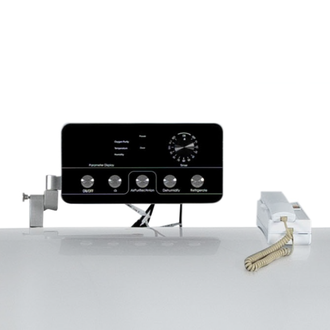 Operating the chamber is simple, you will be able to operate the chamber from either inside or outside the chamber and is totally automated and simple to operate. The operating panel controls the power switch, oxygen, anion, refrigeration and humidification system, which is all visible on the display screens inside and outside of the chamber.