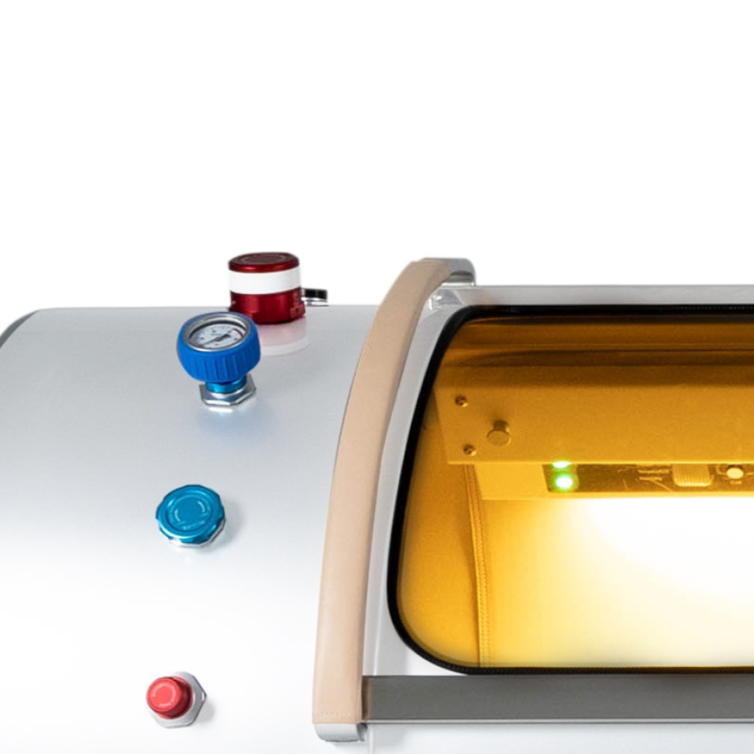 Touchscreen controls inside and outside the chamber allow full control of all settings, with mirrored commands for seamless use. Ability to control Treatment Pressure Level, Compression/Decompression Speed, Chamber Temperature, and Treatment Duration.