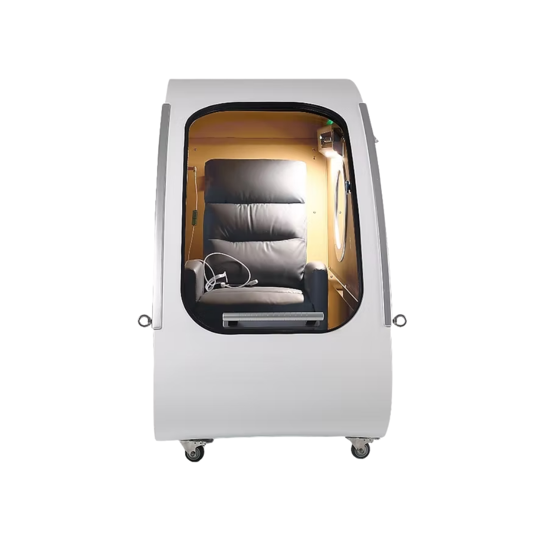 This premium designed Seated Hard Shell Hyperbaric Chamber is designed for easy access and comfort. Specifically, so that the user can sit or recline comfortably during hyperbaric oxygen therapy in an unconfined space.